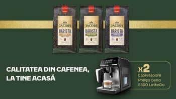Cumpără orice cafea Jacobs de minimum 35 RON, trimite SMS cu textul JACOBS urmat de numărul bonului fiscal la 1870 (*tarif normal) și poți câștiga, prin tragere la sorți, o excursie pentru două persoane în jurul lumii, unde vei trăi clipe minunate alături de persoana dragă.